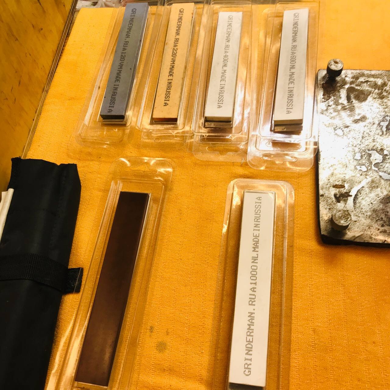 Не всё так печально, как кажется на первый взгляд. В РФ производятся абразивы, один из производителей завод "Инф Абразив", камни которого продаются под маркой "Grinderman". В данной статье я рассмотрю, насколько хорошо набор этих камней из оксида алюминия затачивает простой кухонный нож из нержавейки, можно ли ими пользоваться "из коробки" и насколько это сложно.