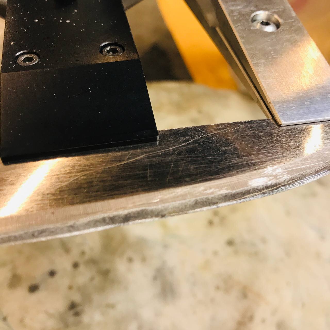 На фотографии показал, насколько много выделяется шлама после одного прохода по режущей кромке, камни очень быстро работают по кухонной нержавейке. На второй фотографии обвёл красным, если на первой не очень видно ))